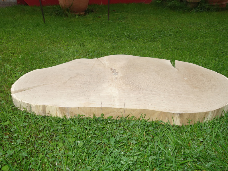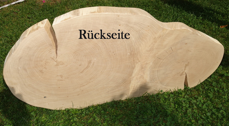 Rückseite: plan gehobelt, geschliffen, etwas Kettensägeschnitt sichtbar