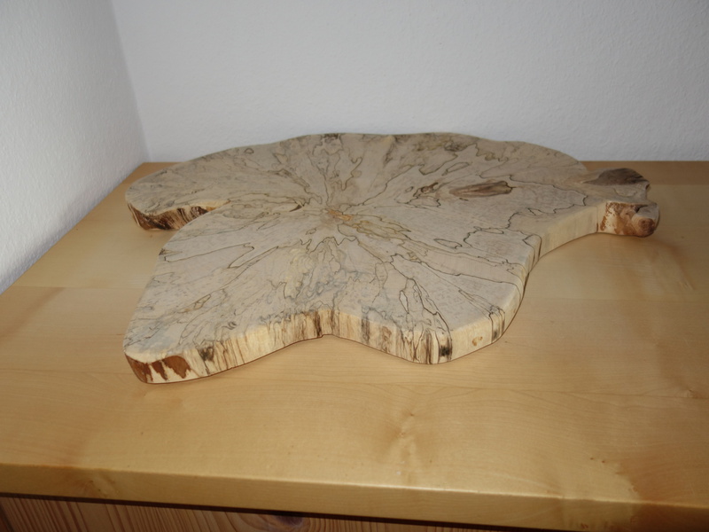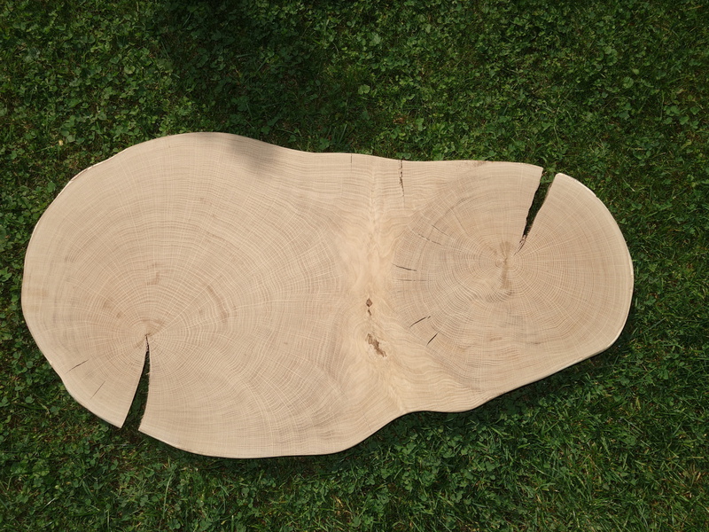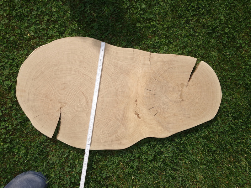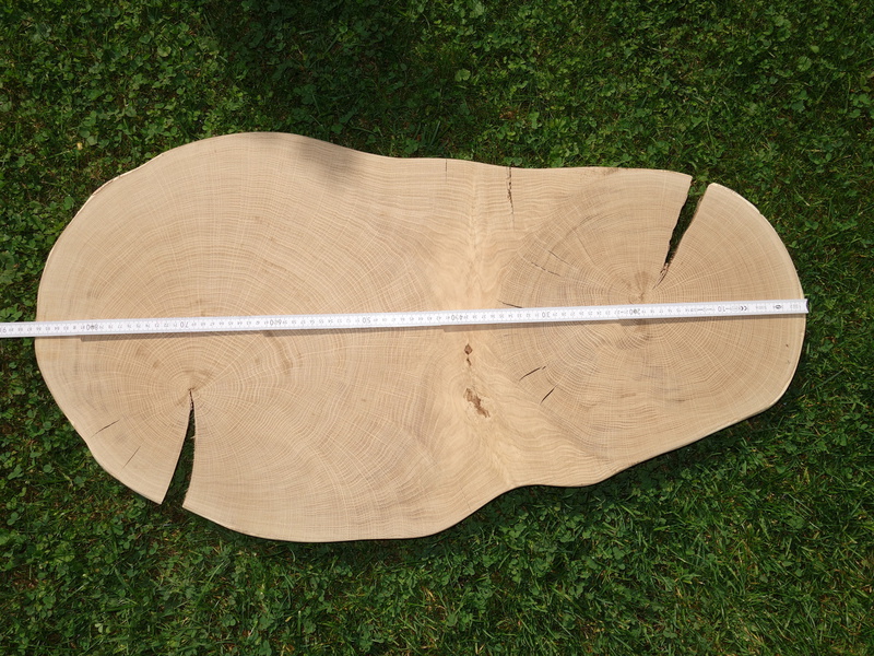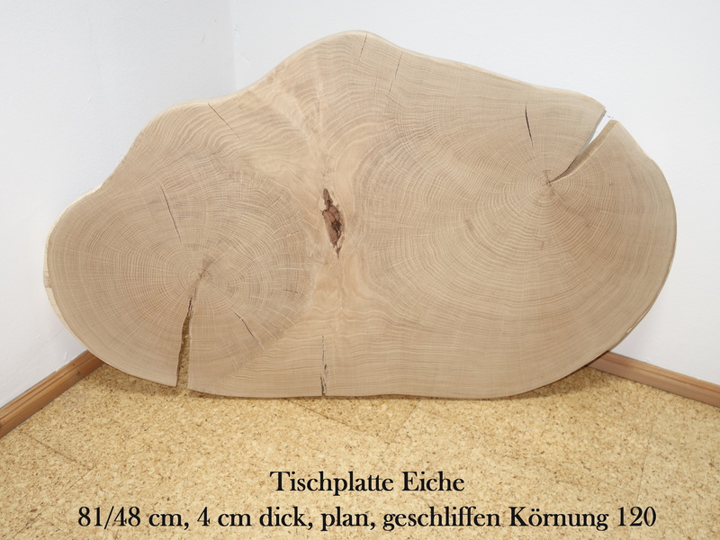 Vorderseite: gehobelt, fein geschliffen, kleine Risse mit Kunstharz aufgefül