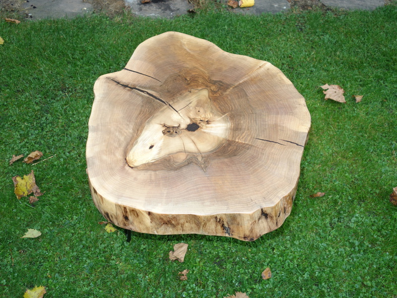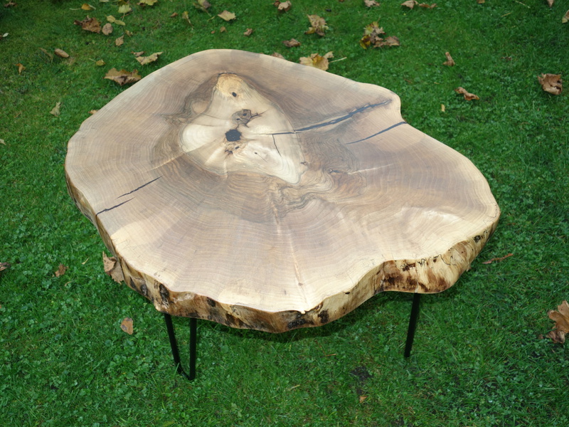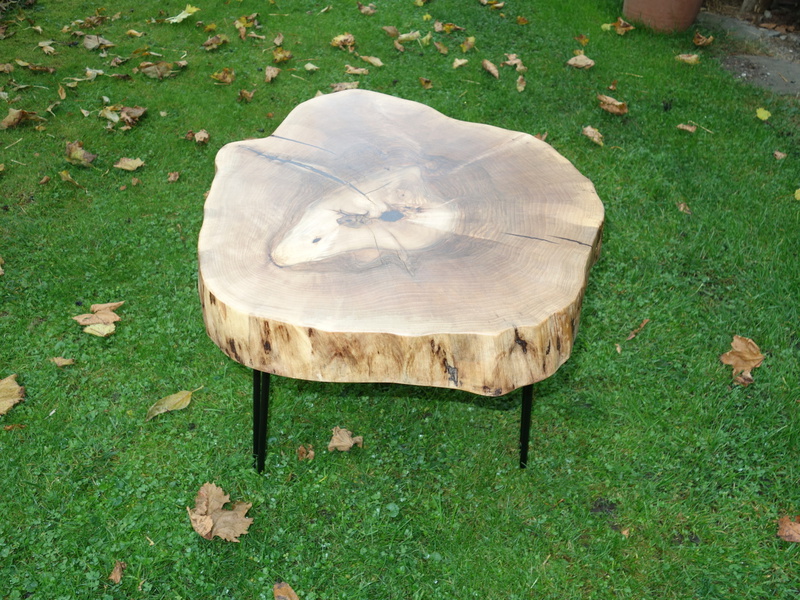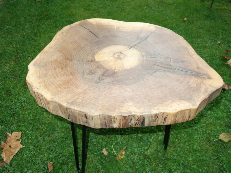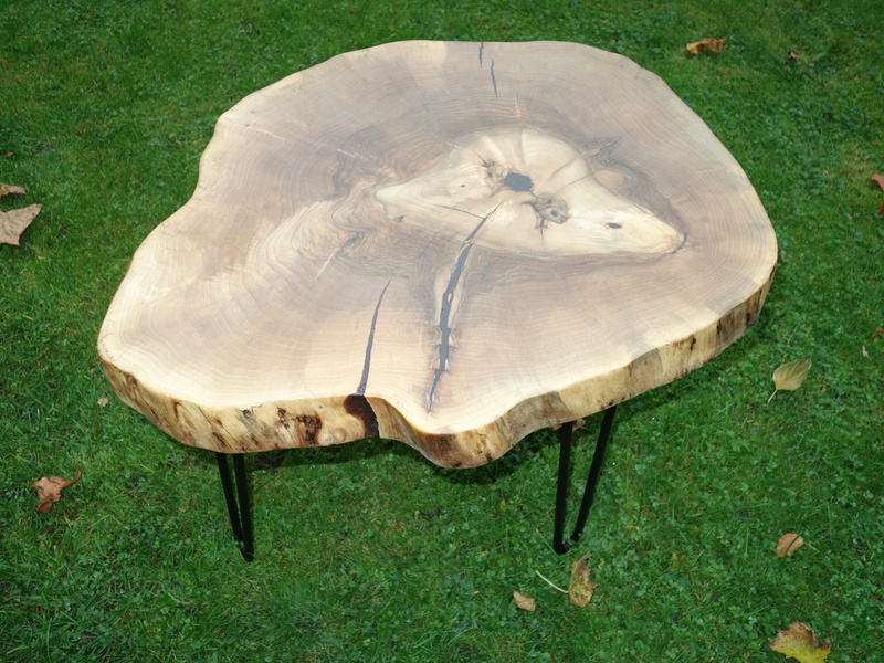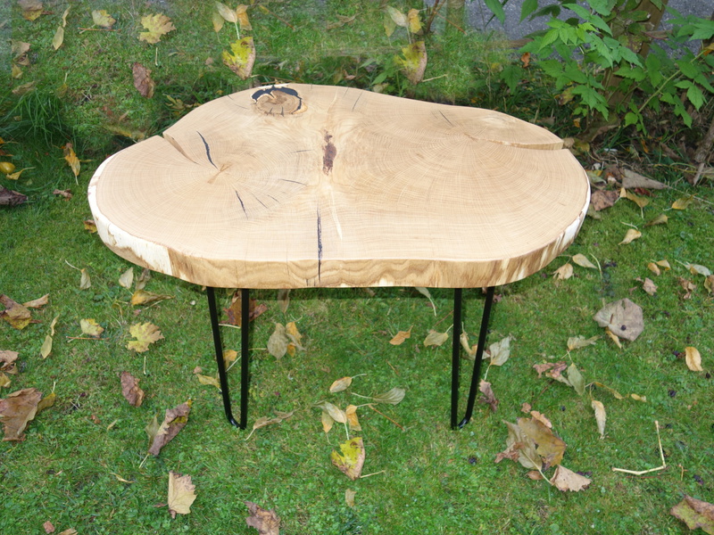 Beistelltische von heimischen Hölzern aus Stammscheiben und Stammholz gefertigt